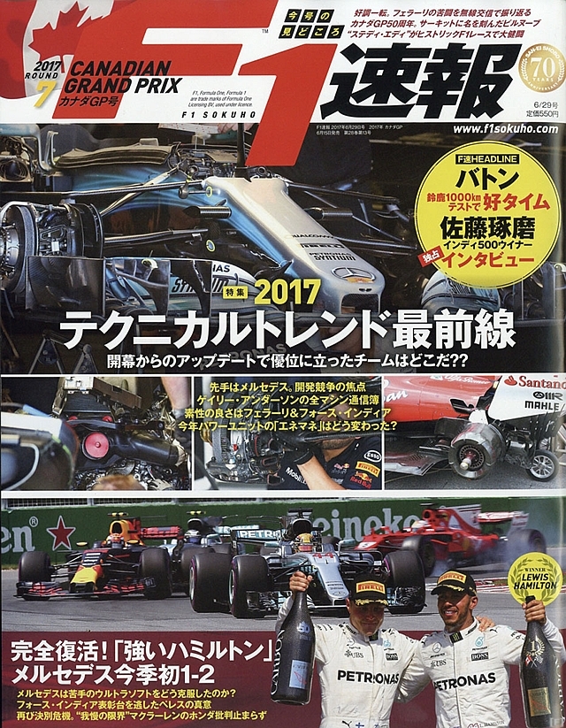 最新のカナダGP号では、ポール・トゥ・ウィンで圧勝を飾ったメルセデスAMGのL・ハミルトンをクローズアップ。前戦モナコGPではフェラーリに形勢逆転を許したが、カナダGPではレース週末を通して速さを発揮し、復調をみせた。誌面ではハミルトンの完璧なレース週末を改めて振り返っている。
