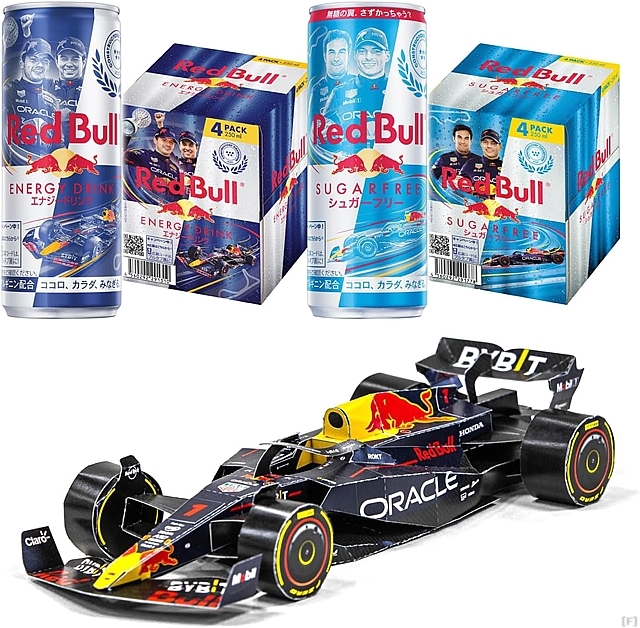 レッドブルは、一部のインターネットショップで「RB19 ペーパークラフト」付きパッケージを好評発売中だ。