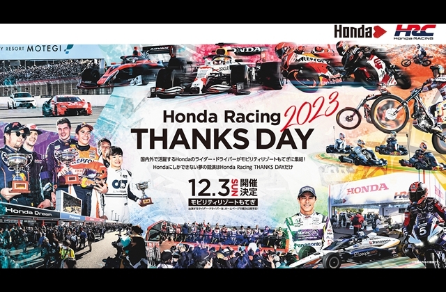 本日より、今年12月に栃木県のモビリティリゾートもてぎにて開催される「Honda Racing THANKS DAY 2023」のチケット発売が開始される。