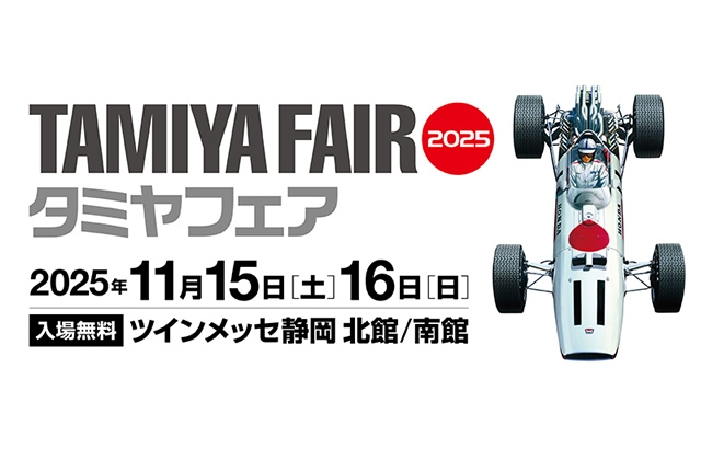 「タミヤフェア2025」は、2025年11月15日・11月16日に静岡県のツインメッセ静岡で開催。タミヤの最新製品の展示をはじめ、RCカーやミニ四駆の競技大会など、様々なプログラムが行われる。
