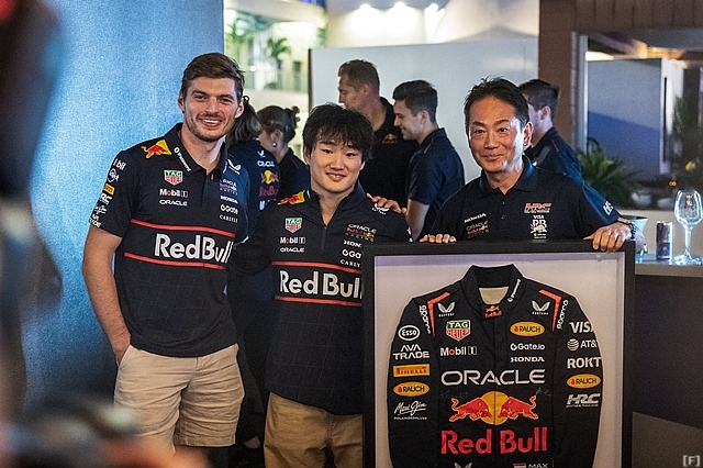アブダビGPの週末、レッドブル/レーシング・ブルズはパートナー関係最終戦を迎えたが、両チームからHRC(ホンダ・レーシング)に記念のレーシング・スーツが贈られた。