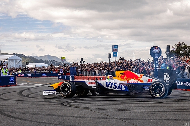 サンフランシスコでの「ショーラン」には、レッドブルとレーシング・ブルズの最新カラーリングが施された2台のRB7が持ち込まれた。レッドブルのマシンは角田裕毅がドライブし、レーシング・ブルズのマシンはS・スピードがステアリングを握った。