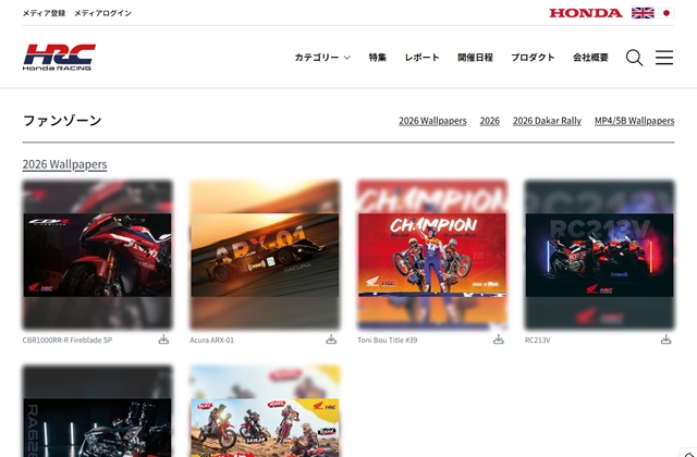 HRCでは、公式ホームページで様々な壁紙を配布している。HRCが関わる様々なカテゴリーのマシンの壁紙が配布されているが、2026年のF1パワーユニット「RA626H」がラインナップに加わった。