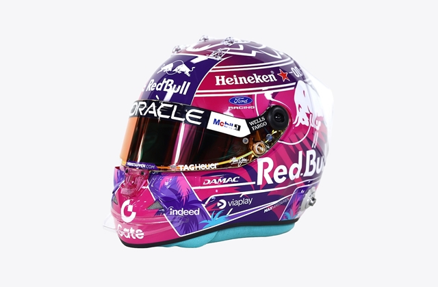 フェルスタッペンは、今シーズンは紺色を基調としたヘルメットのカラーリングを採用している。マイアミGPでは、これまでのイメージを一新してパープルを基調としたカラーリングへと変更する。