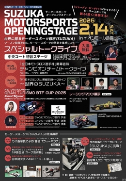 三重県鈴鹿市にあるイオンモール鈴鹿は、2026年2月14日に「SUZUKA MOTORSPORTS OPENINGSTAGE」を開催する。 「SUZUKA…